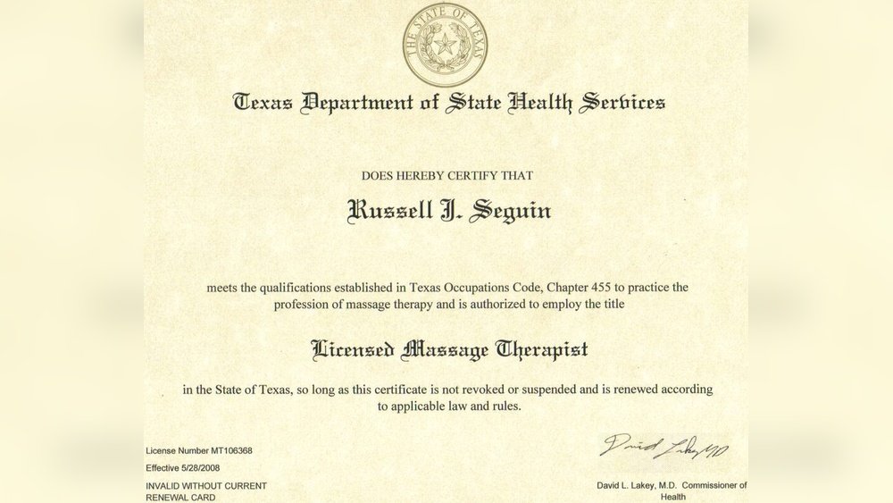 Apply for a massage therapist license through the Texas Department of Licensing and Regulation. Submit proof of completed education and training. Pass the Texas Jurisprudence Exam. This test checks your knowledge of Texas massage laws. Renew your license every two years by paying a fee and completing continuing education.